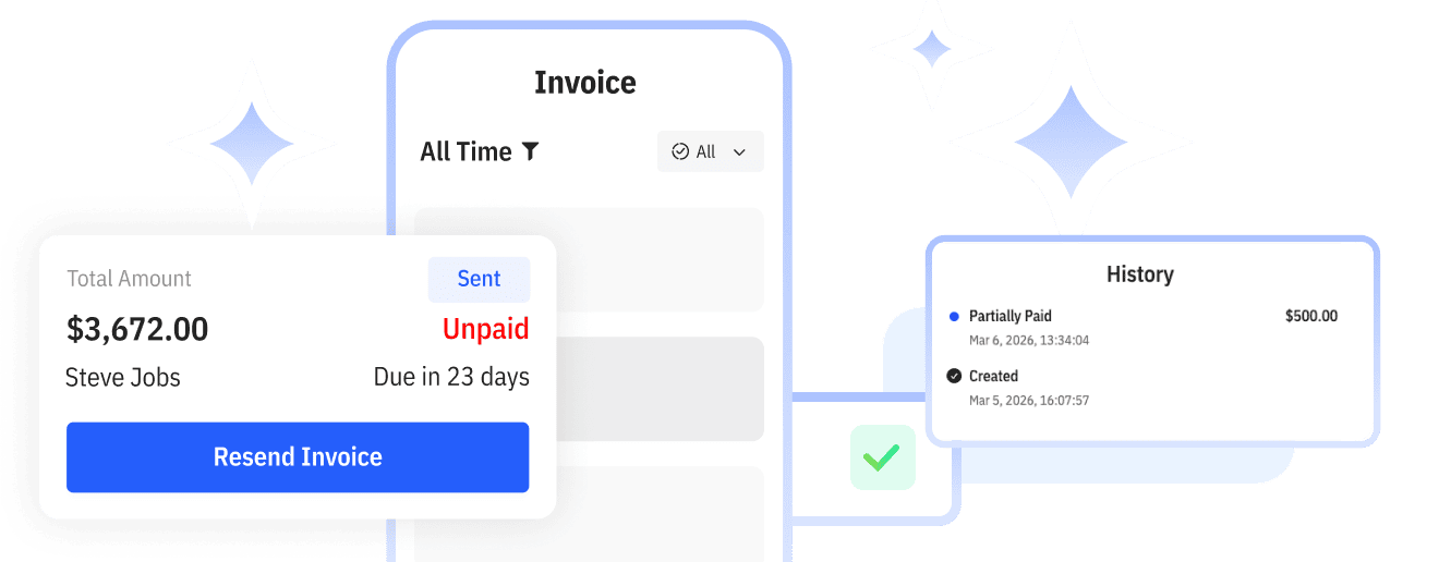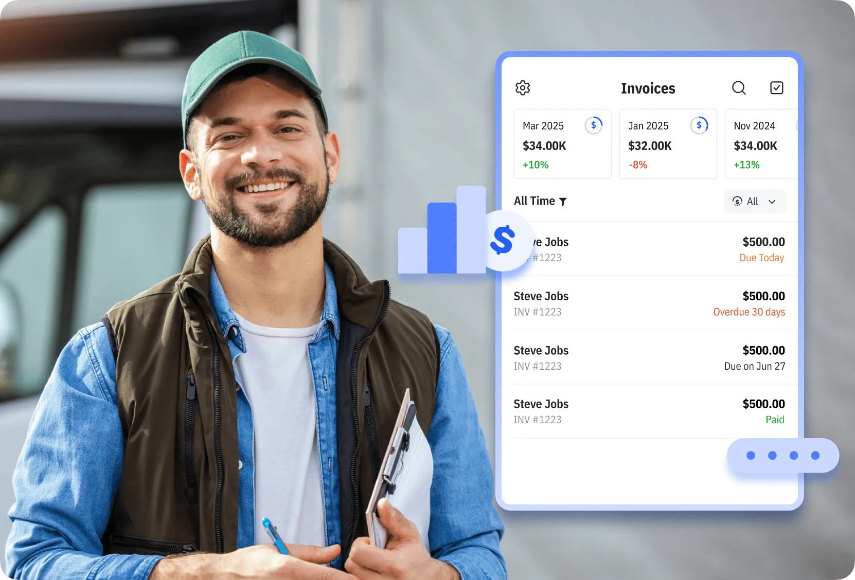 Stay organized and never lose track of your payments. See which invoices are paid, pending, or overdue at a glance.