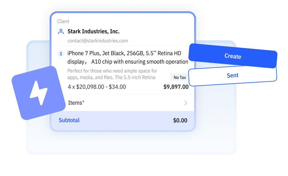 Create and send invoices right after the job is done, wherever your are.