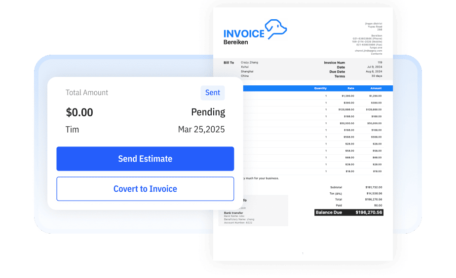 Turn approved estimates into invoices instantly.