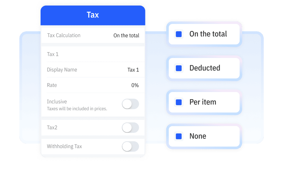 Choose how tax is calculated to match your local rules and pricing style.