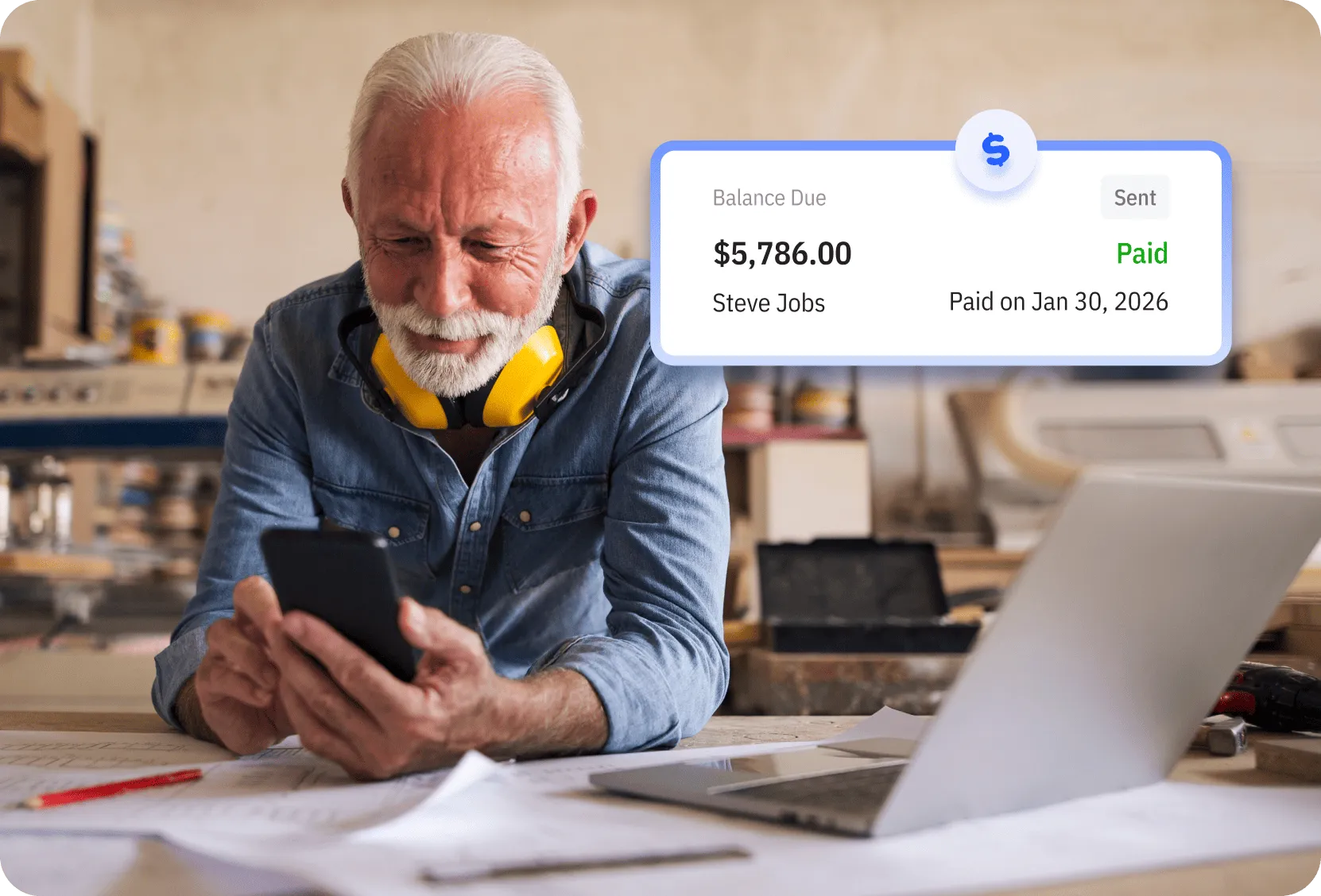 Stay focused on the job, not the paperwork. Create professional estimates, send invoices on the spot, and get paid faster with a