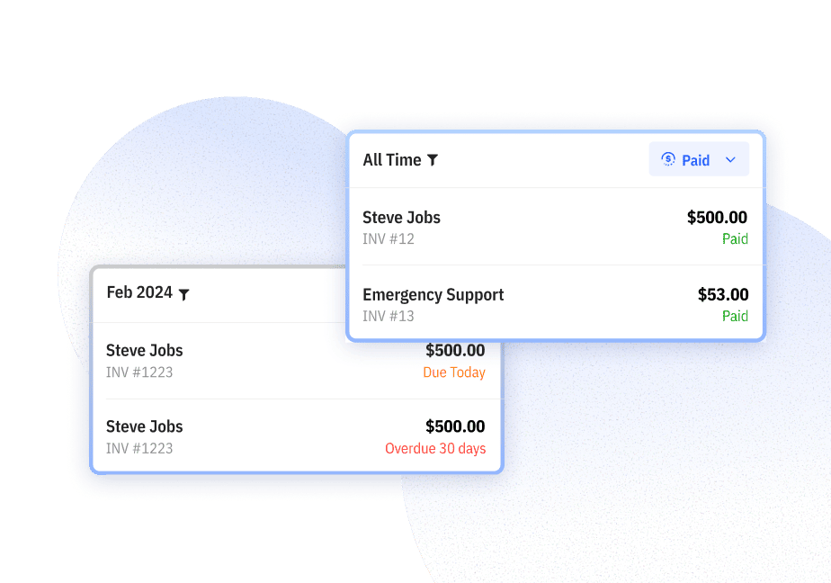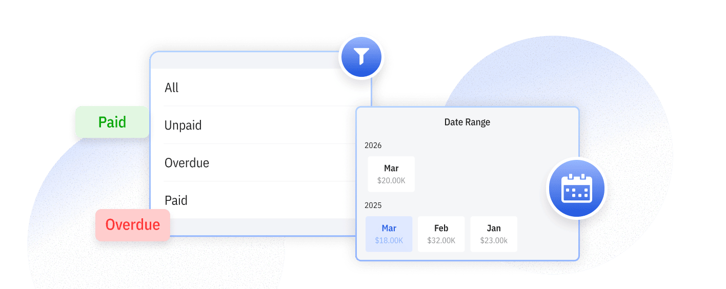 Quickly sort and view invoices by date,paid, sent, or pending status. This helps you focus on outstanding payments and manage cash flow efficiently.
