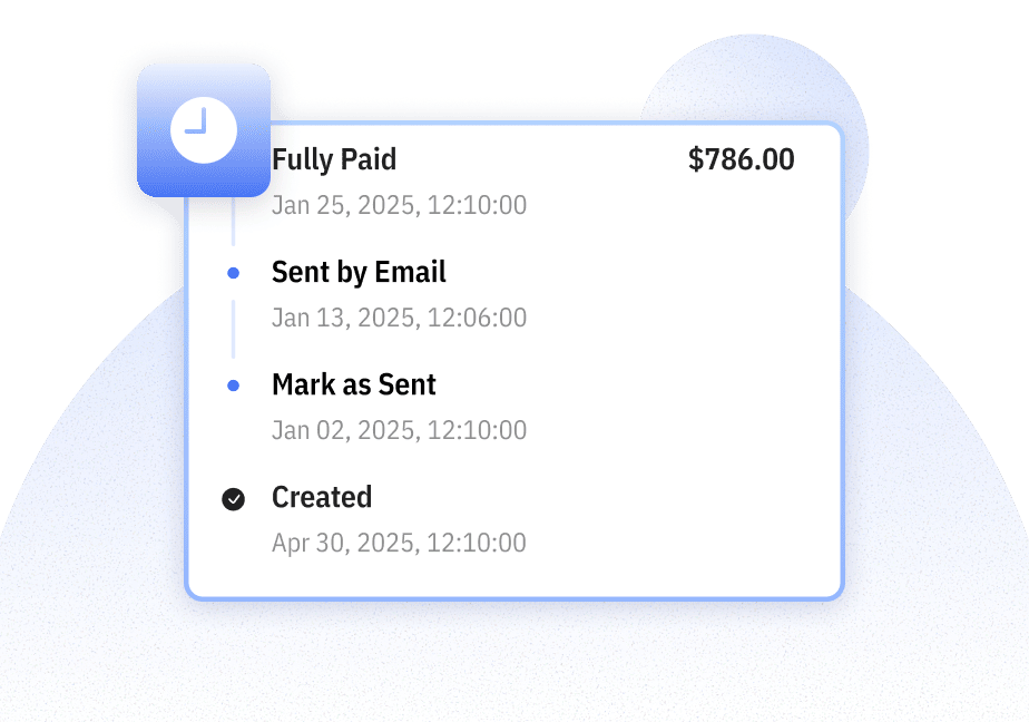 See the full timeline of each invoice, including when it was created, sent, and paid.