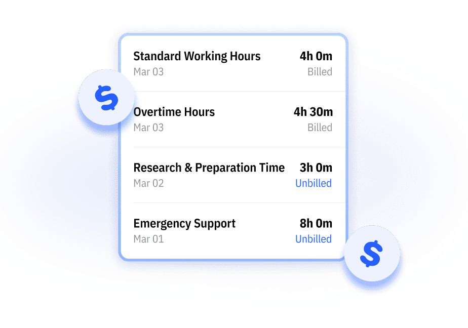 manage billed and unbilled hours, analyze time spent on different projects, and ensure your clients are billed correctly for every