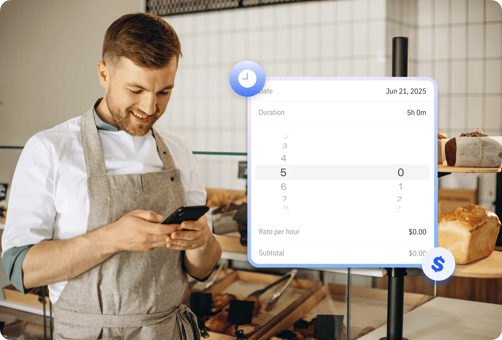 Log hours in seconds and add notes describing tasks performed, making your records clear and transparent.