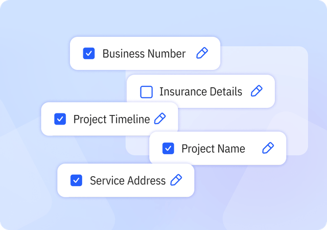 Includes essential and industry-specific fields designed for contractor workflows, with the flexibility to add or remove fields as needed.